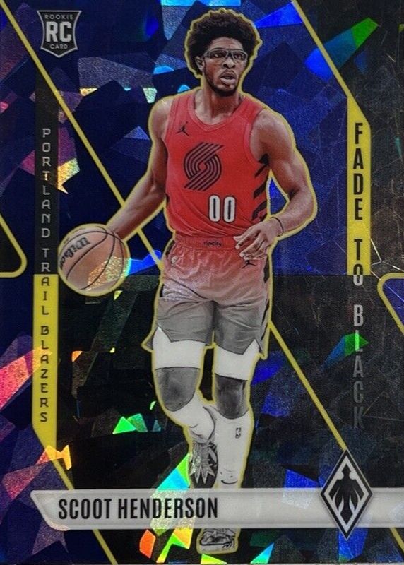 The Scoot Henderson 2023 Phoenix #6 Fade to Black - Blue Ice Rookie card in Raw condition has not changed in price in the last 30 days and was last sold for $1.31 .
