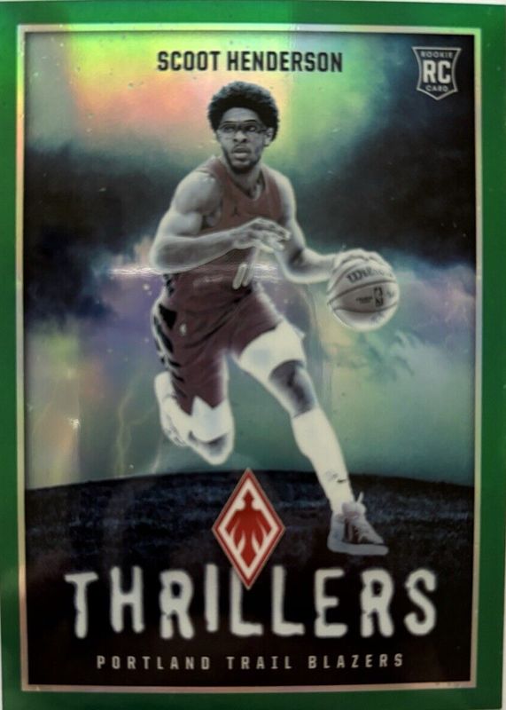 The Scoot Henderson 2023 Phoenix #10 Thrillers - Green /5 Rookie card in Raw condition has not changed in price in the last 30 days and was last sold for $27.00 .