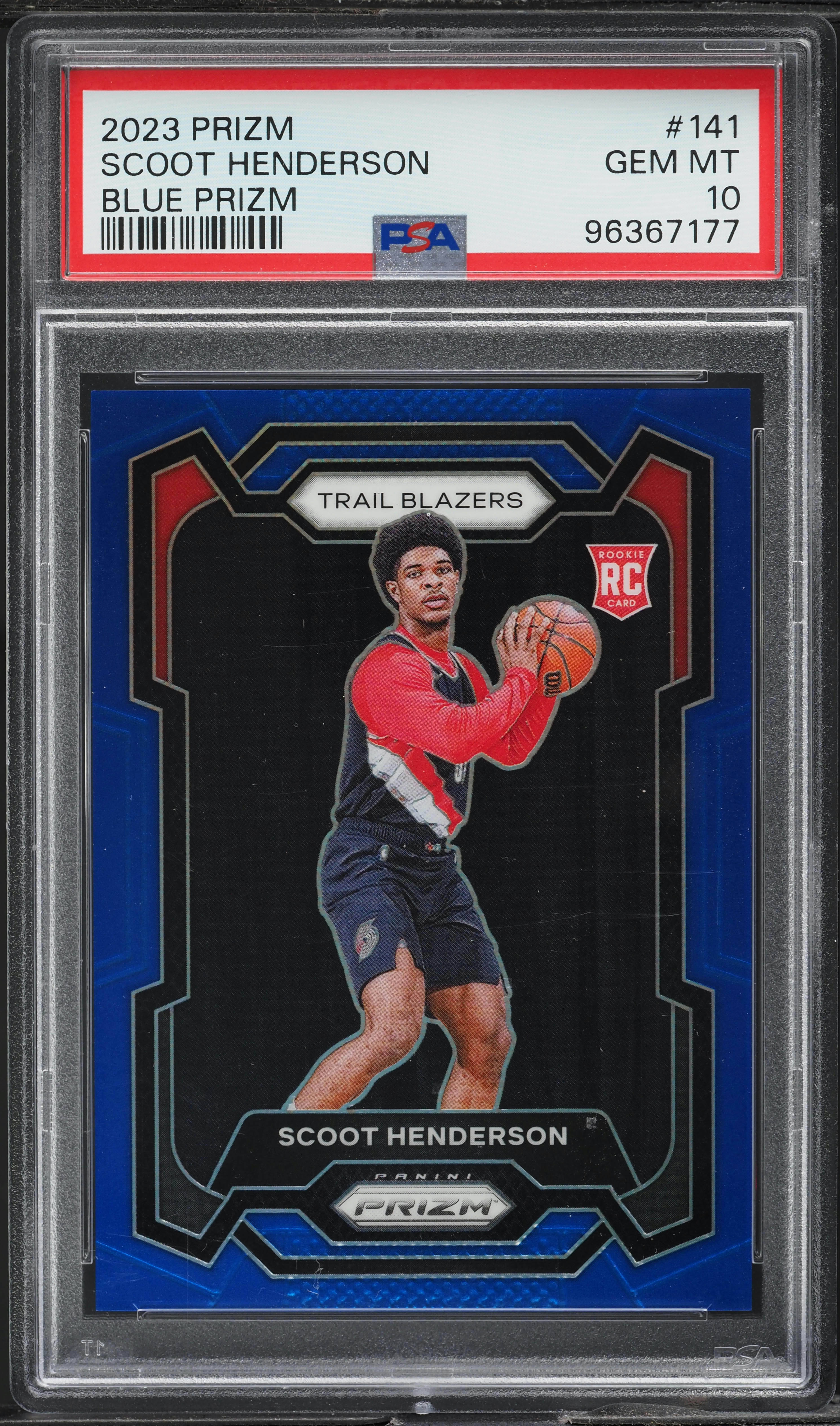 The Scoot Henderson 2023 Prizm #141 Blue /199 Rookie card in Raw condition has not changed in price in the last 30 days and was last sold for $41.00 .