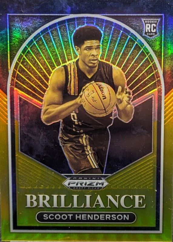 The Scoot Henderson 2023 Prizm Draft Picks #3 Brilliance - Gold /10 Rookie card in Raw condition has not changed in price in the last 30 days and was last sold for $49.99 .
