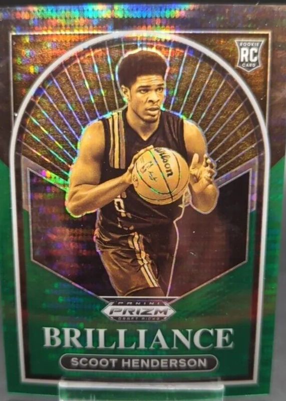 The Scoot Henderson 2023 Prizm Draft Picks #3 Brilliance - Green Pulsar /25 Rookie card in Raw condition has not changed in price in the last 30 days and was last sold for $24.99 .