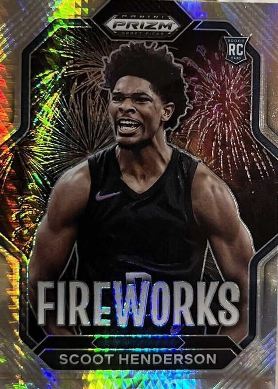 The Scoot Henderson 2023 Prizm Draft Picks #3 Fireworks - Hyper Rookie card in Raw condition has not changed in price in the last 30 days and was last sold for $0.99 .