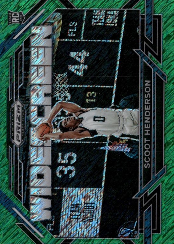 The Scoot Henderson 2023 Prizm Draft Picks #3 Widescreen - Green Shimmer /3 Rookie card in Raw condition has not changed in price in the last 30 days and was last sold for $103.50 .