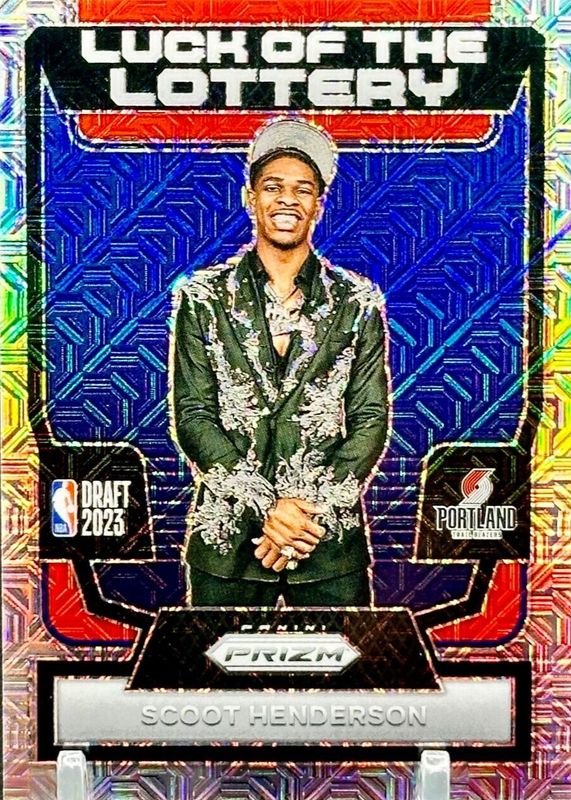 The Scoot Henderson 2023 Prizm #14 Luck of the Lottery - Mojo /25 Rookie card in Raw condition has not changed in price in the last 30 days and was last sold for $10.50 .