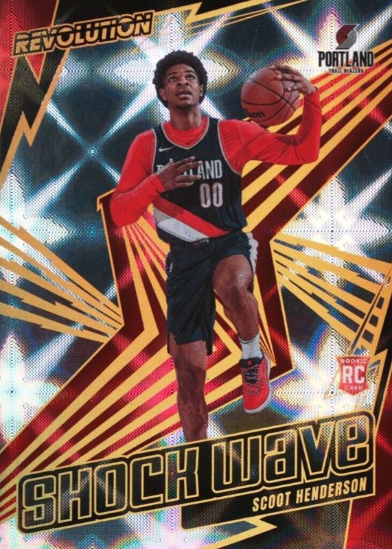The Scoot Henderson 2023 Revolution #14 Shock Wave - Galactic /(SSP) Rookie card in Raw condition has not changed in price in the last 30 days and was last sold for $32.00 .