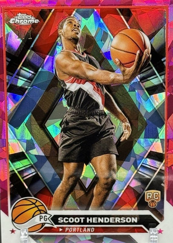Auctions Ending Soon for Scoot Henderson 2023 Topps Chrome Sapphire Edition #60 Padparadscha /1 Rookie RAW