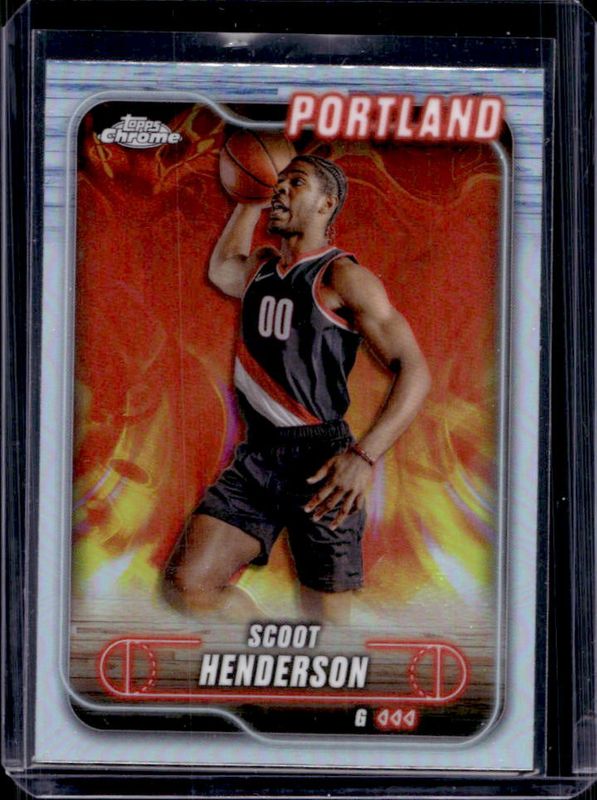 The Scoot Henderson 2024 Topps Chrome #24 Refractor card is 1 of 60 Scoot Henderson's card variations in the 2024 Topps Chrome set being tracked by Sports Card Investor, including Base, Blue Basketball Refractor, Magenta Refractor, Negative Refractor, and Pink Basketball Refractor.