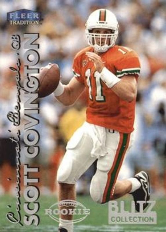 The Scott Covington 1999 Fleer Tradition #264BC Blitz Collection Rookie card is 1 of 3 Scott Covington's card variations in the 1999 Fleer Tradition set being tracked by Sports Card Investor, including Base, and Trophy Collection /20.