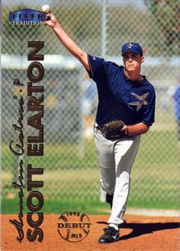 The Scott Elarton 1999 Fleer Tradition #94 Base card is 1 of 4 Scott Elarton's card variations in the 1999 Fleer Tradition set being tracked by Sports Card Investor, including Millennium, Warning Track Collection, and Starting 9 /9.