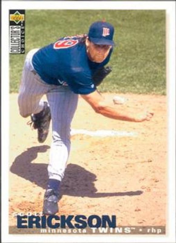 The Scott Erickson 1995 Upper Deck Collector's Choice #483 Base card is 1 of 3 Scott Erickson's card variations in the 1995 Upper Deck Collector's Choice set being tracked by Sports Card Investor, including Gold Signatures, and Silver Signatures.