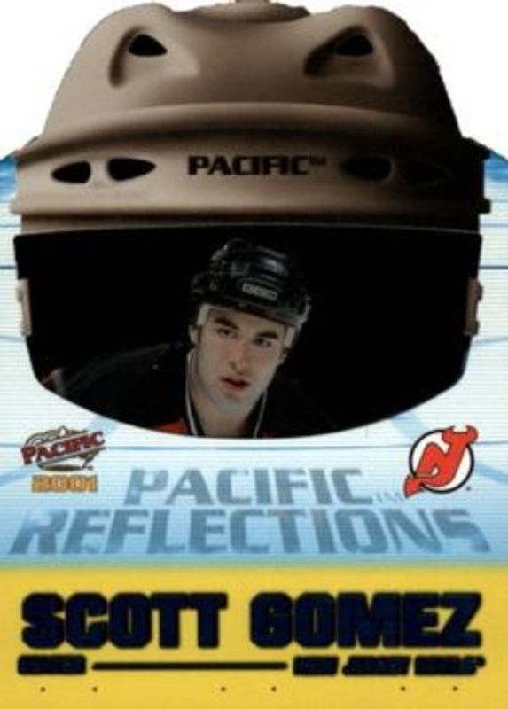 The Scott Gomez 2000 Pacific #13 Reflections card is 1 of 13 Scott Gomez's card variations in the 2000 Pacific set being tracked by Sports Card Investor, including Base, Gold /50, Ice Blue /45, Copper /40, and Premiere Date /40.