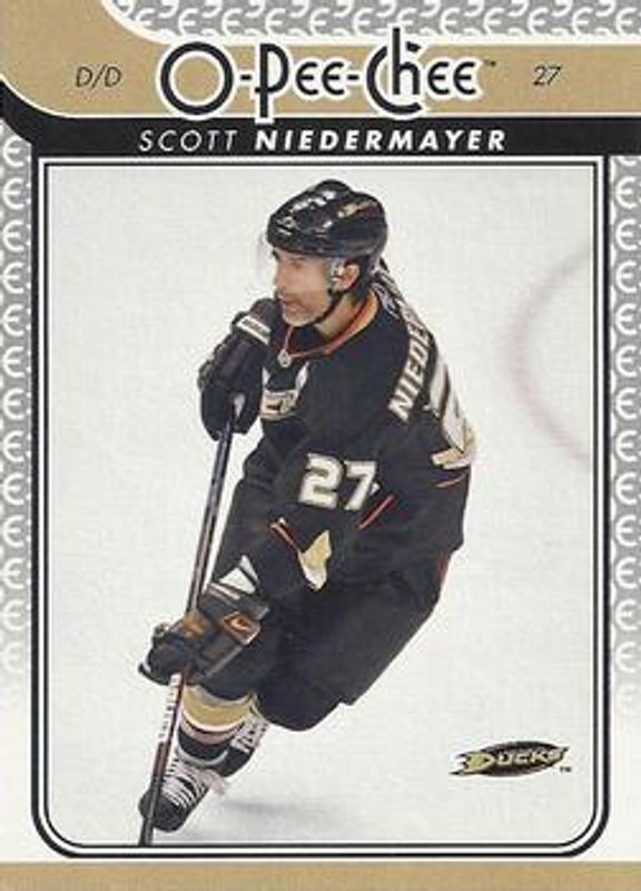The Scott Niedermayer 2009 O-Pee-Chee #325 Base card is 1 of 6 Scott Niedermayer's card variations in the 2009 O-Pee-Chee set being tracked by Sports Card Investor, including Rainbow, Retro, Retro Blank Back, Retro Rainbow /100, and Canadian Heroes Foil.