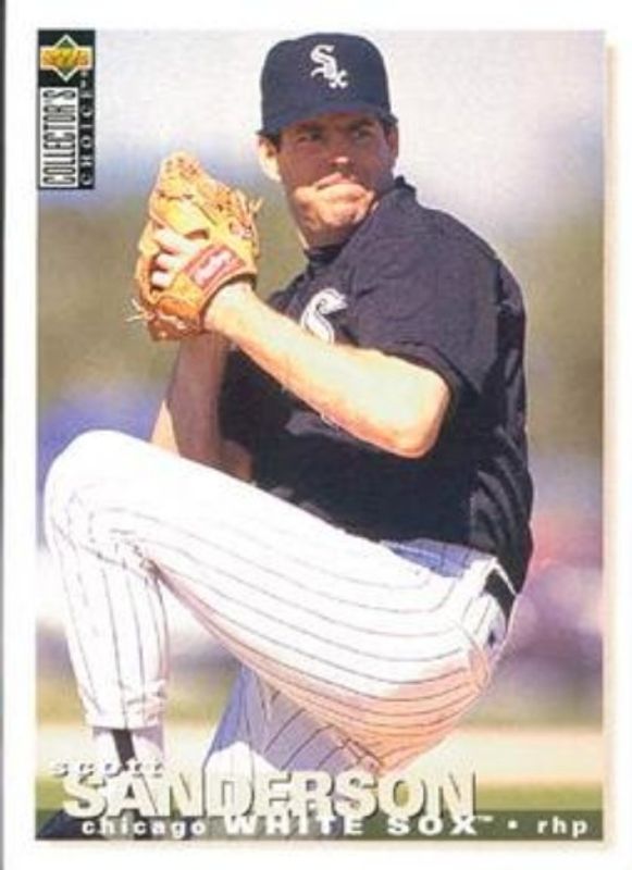 The Scott Sanderson 1995 Upper Deck Collector's Choice #498 Base card is 1 of 3 Scott Sanderson's card variations in the 1995 Upper Deck Collector's Choice set being tracked by Sports Card Investor, including Gold Signatures, and Silver Signatures.