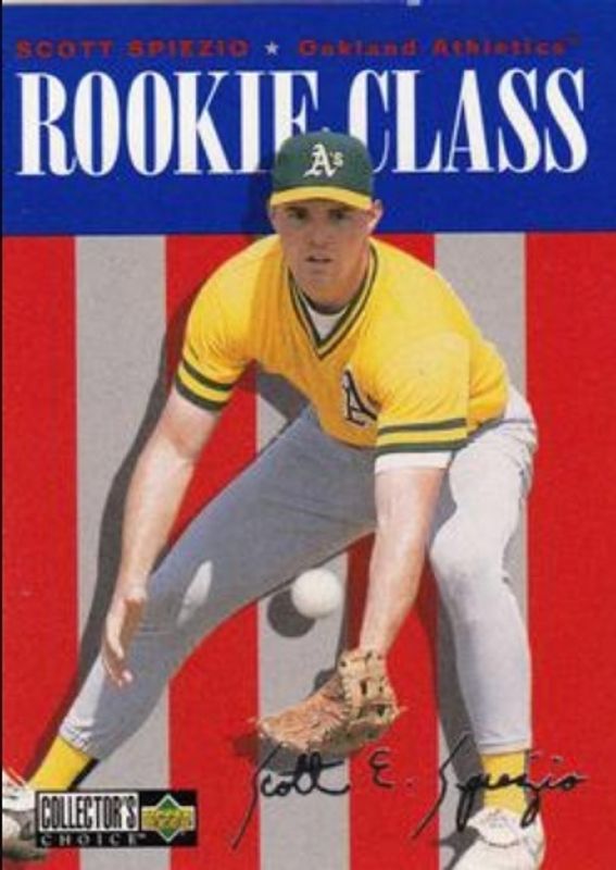 The Scott Spiezio 1996 Upper Deck Collector's Choice #447 Silver Signatures Rookie card is 1 of 3 Scott Spiezio's card variations in the 1996 Upper Deck Collector's Choice set being tracked by Sports Card Investor, including Base, and Gold Signatures.