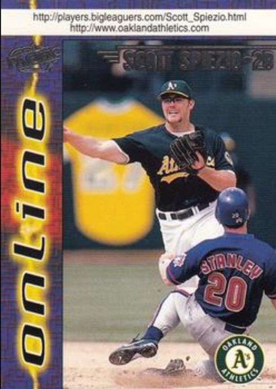 The Scott Spiezio 1998 Pacific Online #545 Base card is 1 of 4 Scott Spiezio's card variations in the 1998 Pacific Online set being tracked by Sports Card Investor, including Base Winners, Red, and Web Cards.