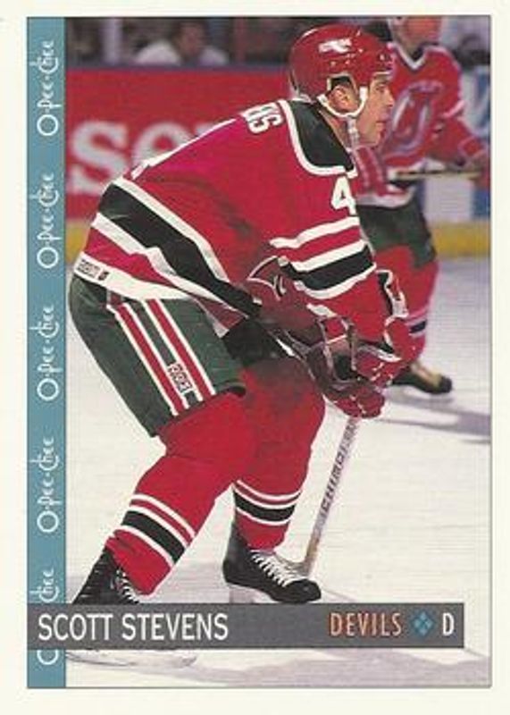 The Scott Stevens 1992 O-Pee-Chee #336 Base card is 1 of 3 Scott Stevens' card variations in the 1992 O-Pee-Chee set being tracked by Sports Card Investor, including Base, and 25th Anniversary.