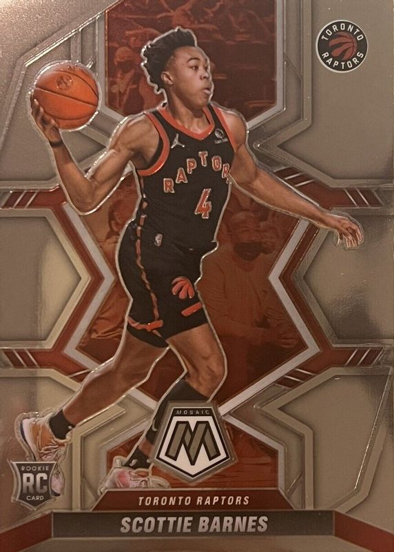 The Scottie Barnes 2021 Mosaic #207 Base Rookie card in Raw condition has moved up $1.50 (+152%) in the last 30 days and was last sold for $2.49 .