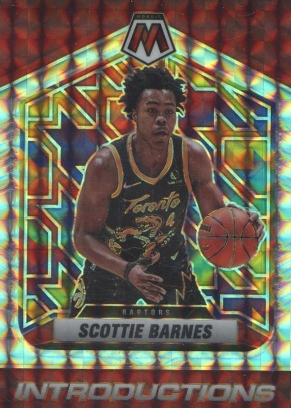 The Scottie Barnes 2021 Mosaic #4 Introductions - Silver Mosaic Rookie card in Raw condition has not changed in price in the last 30 days and was last sold for $3.13 .