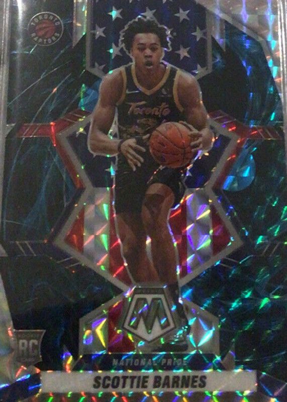 The Scottie Barnes 2021 Mosaic #257 National Pride - Genesis /(SSP) Rookie card in Raw condition has not changed in price in the last 30 days and was last sold for $28.11 .