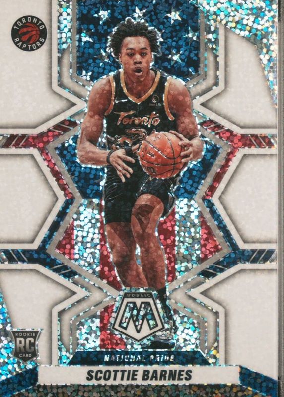 Auctions Ending Soon for Scottie Barnes 2021 Mosaic #257 National Pride - White Sparkle /(SSP) Rookie RAW