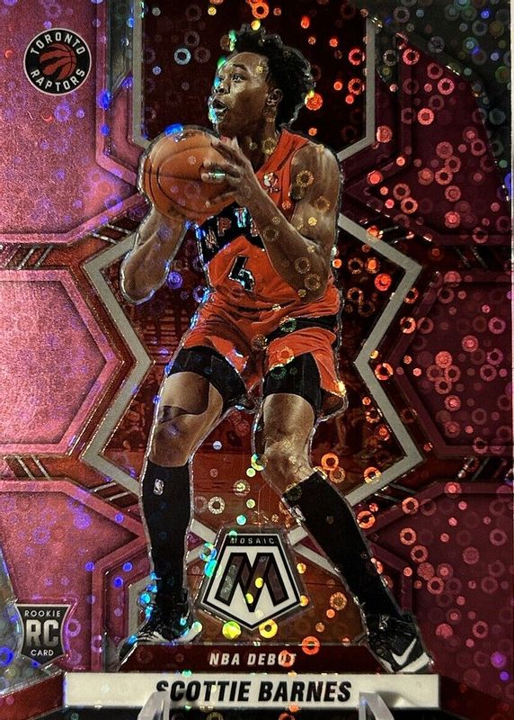 The Scottie Barnes 2021 Mosaic #264 NBA Debut - Fast Break Pink /20 Rookie card in Raw condition has not changed in price in the last 30 days and was last sold for $46.00 .