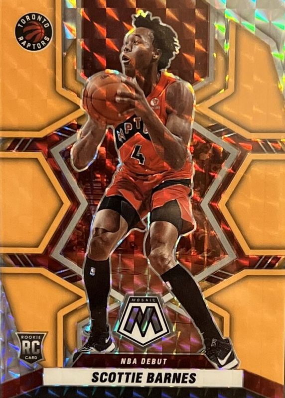 Best Prices Available For Sale of Scottie Barnes 2021 Mosaic #264 NBA Debut - Orange Fluorescent /25
