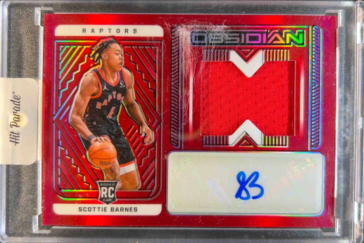 The Scottie Barnes 2021 Obsidian #201 Electric Etch Red Flood Rookie card is 1 of 70 Scottie Barnes' card variations in the 2021 Obsidian set being tracked by Sports Card Investor, including #201 Base, #154 Base, #154 Electric Etch Asia, #154 Electric Etch Blue Flood, and #201 Electric Etch Blue Flood.