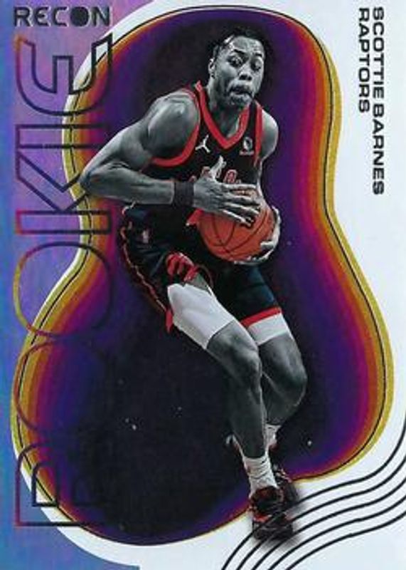 The Scottie Barnes 2021 Recon #4 Rookie Recon card is 1 of 47 Scottie Barnes' card variations in the 2021 Recon set being tracked by Sports Card Investor, including Base, Holo, Pink, Bronze /299, and Red /199.