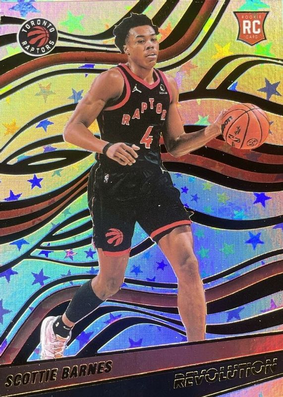 This card is 1 of 14 Scottie Barnes' card variations in the 2021 Revolution set being tracked by Sports Card Investor, including Base, Chinese New Year, Fractal, Groove, and Impact /149.