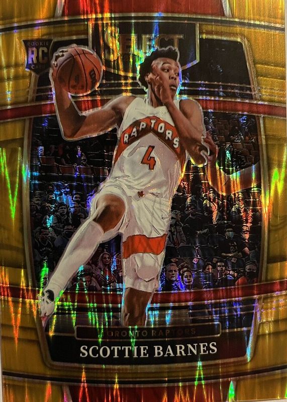 SCOTTIE BARNES 2021-22 PANINI SELECT #74 ROOKIE GOLD FLASH PRIZM 2/10 RAPTORS RC