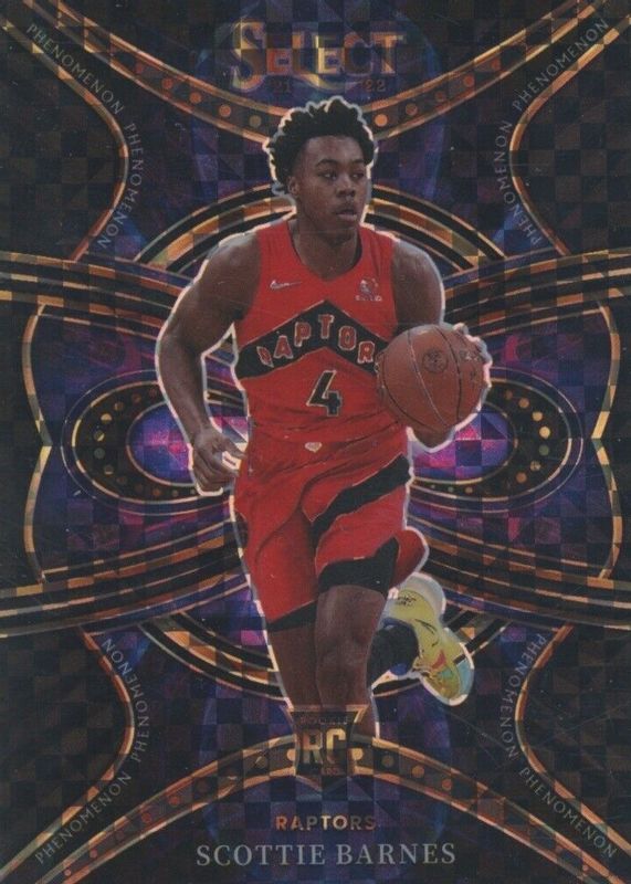 The Scottie Barnes 2021 Select #15 Phenomenon - Black /1 Rookie card in Raw condition has not changed in price in the last 30 days and was last sold for $591.00 .