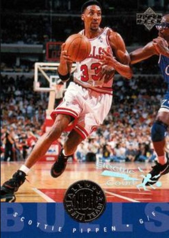 The Scottie Pippen 1995 Upper Deck #167 Electric Court card is 1 of 20 Scottie Pippen's card variations in the 1995 Upper Deck set being tracked by Sports Card Investor, including #338 Base, #322 Base, #186 Base, #167 Base, and #AS4 All Star Class.