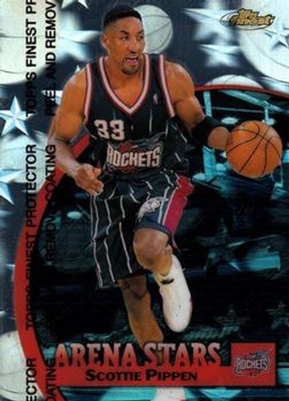 The Scottie Pippen 1998 Topps Finest #AS8 Arena Stars card is 1 of 16 Scottie Pippen's card variations in the 1998 Topps Finest set being tracked by Sports Card Investor, including Base, Base - No Coating, Refractor, Refractor - No Coating, and Hardwood Honors.