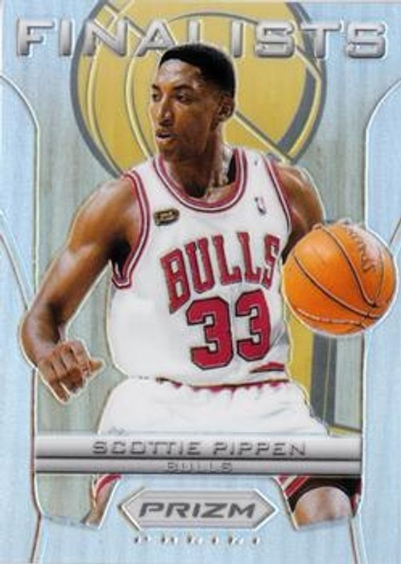 The Scottie Pippen 2012 Prizm #4 Finalists - Silver card is 1 of 8 Scottie Pippen's card variations in the 2012 Prizm set being tracked by Sports Card Investor, including Base, Green, Silver, Gold /10, and Finalists.