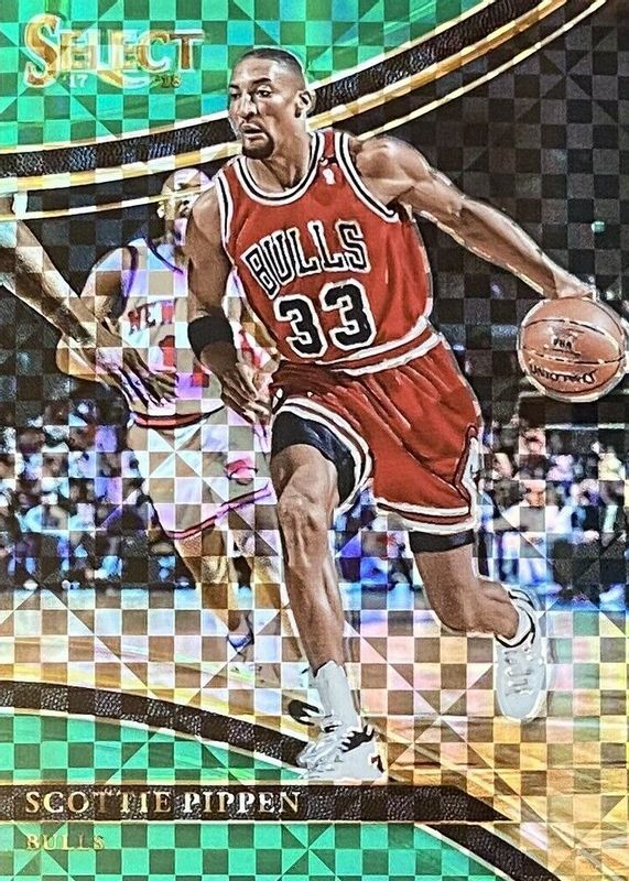 This card is 1 of 10 Scottie Pippen's card variations in the 2017 Select set being tracked by Sports Card Investor, including Courtside, Courtside Silver, Courtside Zebra /(SSP), Courtside Copper /49, and Courtside Tie-Dye /25.
