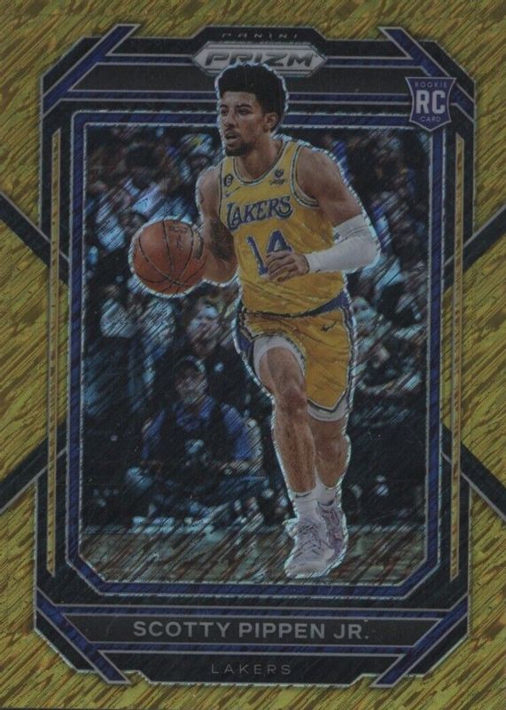 The Scotty Pippen Jr. 2022 Prizm #232 Gold Shimmer /10 Rookie card in Raw condition has not changed in price in the last 30 days and was last sold for $122.50 .
