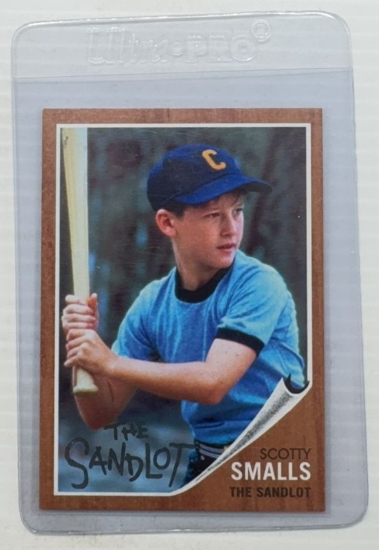 The Scotty Smalls 2018 Topps Archives #SL-SS The Sandlot card is 1 of 10 Scotty Smalls' card variations in the 2018 Topps Archives set being tracked by Sports Card Investor, including 1980s Topps Coins, 1980s Topps Coins - Blue, The Sandlot Autographs, The Sandlot Autographs - Silver /99, and The Sandlot - Green /99.