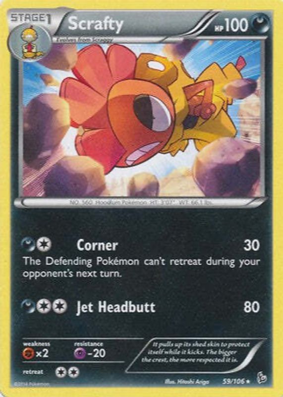 The Scrafty 2014 XY: Flashfire #059/106 Base card in Raw TCG (Near Mint) condition has not changed in price in the last 30 days and was last sold for $1.29 .