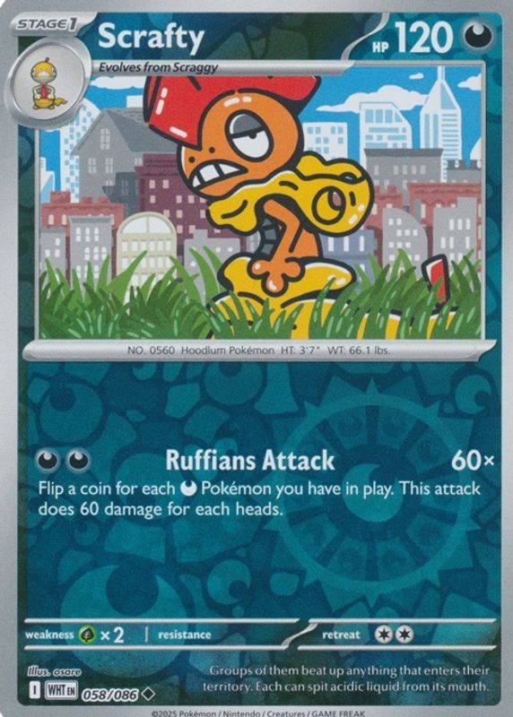 Scrafty 2025 Scarlet & Violet: White Flare #058/086 Reverse Holo RAW TCG (LIGHTLY PLAYED) Price Guide