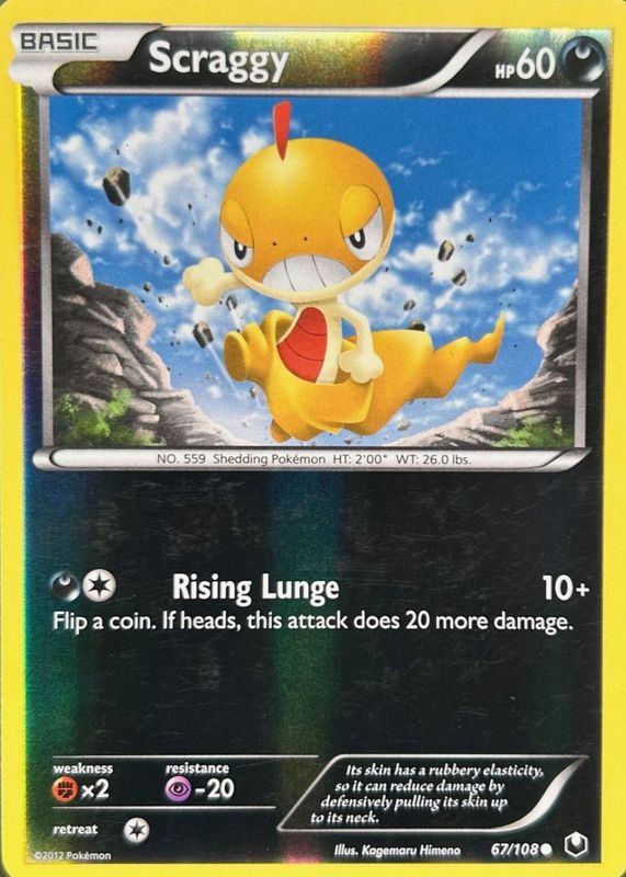 Scraggy 2012 Black & White: Dark Explorers #067/108 Promo (Mirror Reverse Holo) RAW TCG (MODERATELY PLAYED) Price Guide