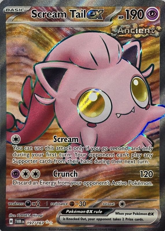 The Scream Tail ex 2024 Scarlet & Violet: Twilight Masquerade #197/167 Ultra Rare card in Raw TCG (Near Mint) condition has moved up $1.12 (+38.8%) in the last 30 days and was last sold for $3.99 .