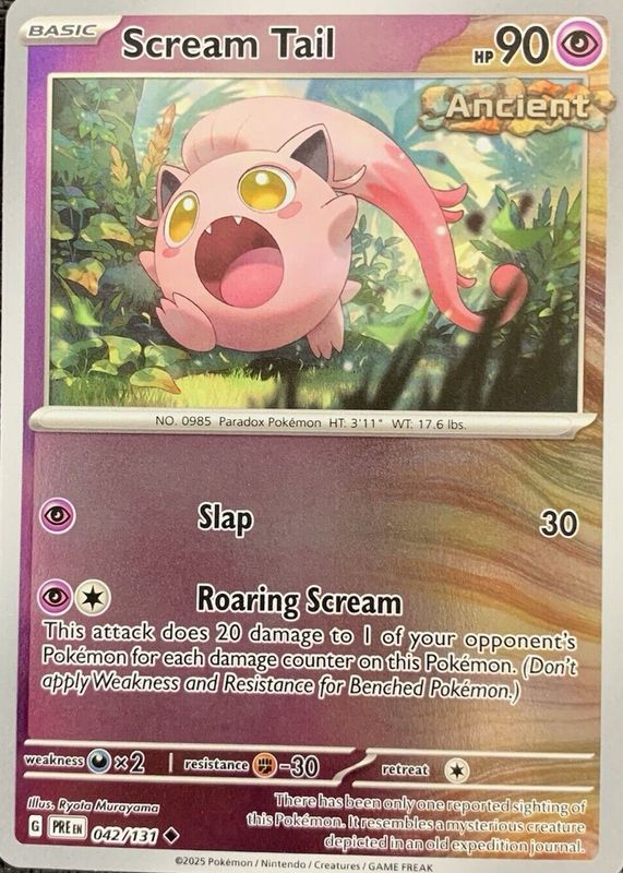 The Scream Tail 2025 Scarlet & Violet: Prismatic Evolutions #042/131 Reverse Holo card in Raw TCG (Near Mint) condition has moved up $0.10 (+6.7%) in the last 30 days and was last sold for $1.59 .