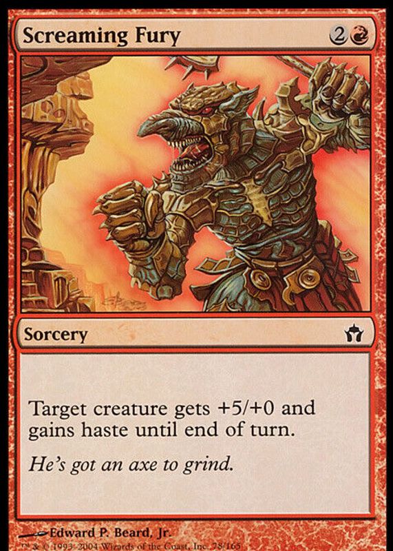 The Screaming Fury 2004 Fifth Dawn #78 Base card in Raw TCG (Lightly Played) condition has not changed in price in the last 30 days and was last sold for $0.99 .