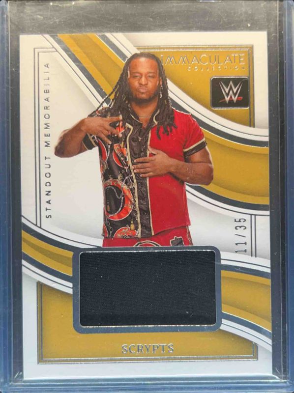 The Scrypts 2023 Immaculate #SS-SCR Standout Memorabilia /35 card is 1 of 8 Scrypts' card variations in the 2023 Immaculate set being tracked by Sports Card Investor, including Remarkable Memorabilia /35, Remarkable Memorabilia - Red /25, Standout Memorabilia - Red /25, Remarkable Memorabilia - Gold /10, and Standout Memorabilia - Gold /10.