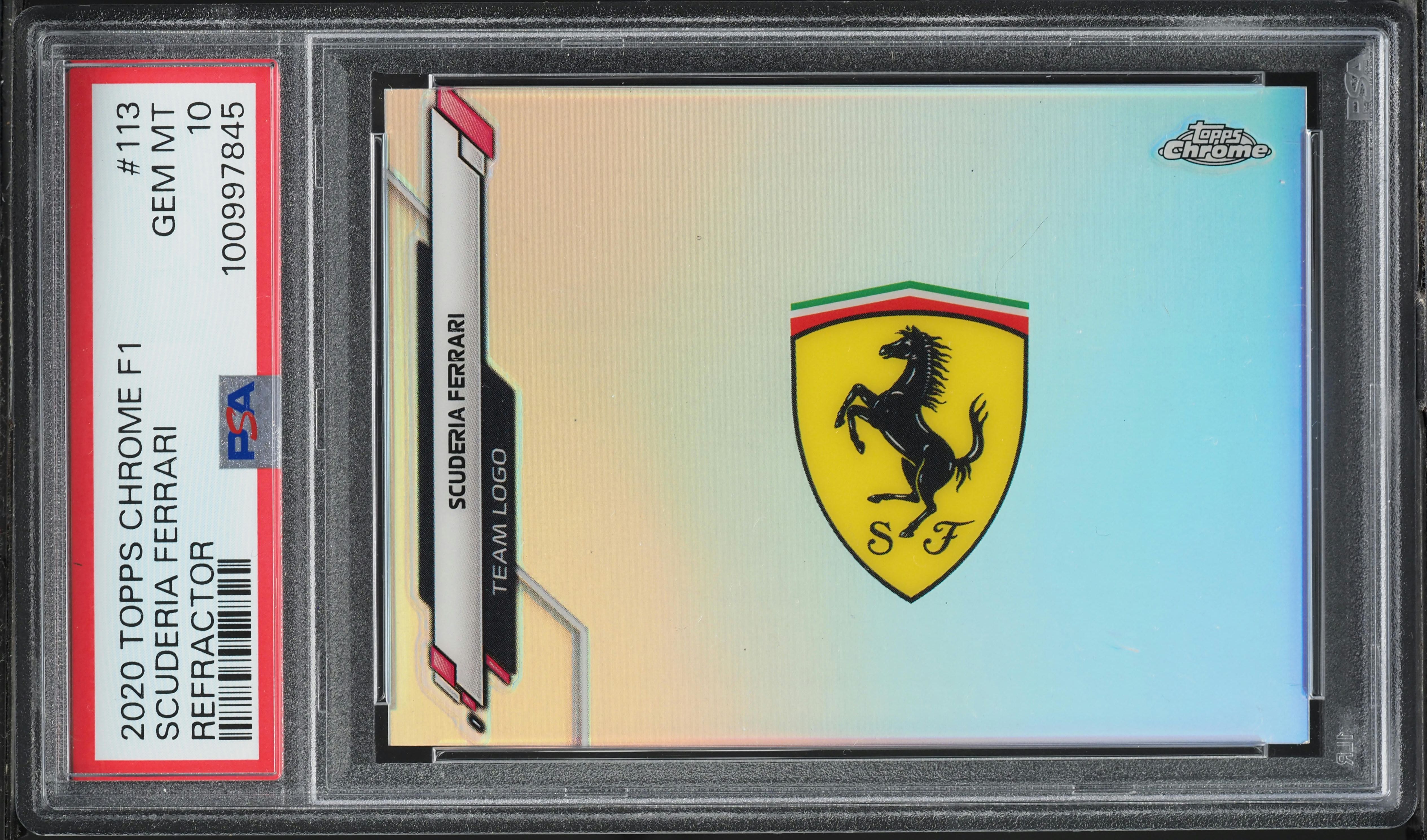 The Scuderia Ferrari 2020 Topps Chrome Formula 1 #113 Team Logos - Refractor card in Raw condition has not changed in price in the last 30 days and was last sold for $42.00 .