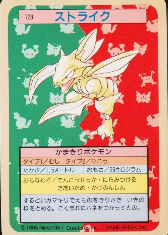 This card is 1 of 2 Scyther's card variations in the 1997 Japanese Topsun set being tracked by Sports Card Investor, including Green Back (2nd Edition).