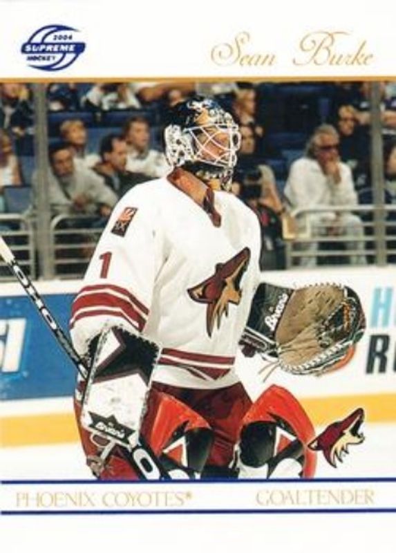 The Sean Burke 2003 Pacific Supreme #76 Blue /250 card is 1 of 5 Sean Burke's card variations in the 2003 Pacific Supreme set being tracked by Sports Card Investor, including Base /775, Retail, Red /425, and Standing Guard.