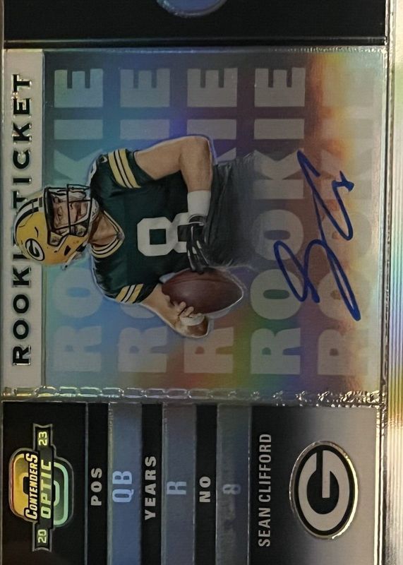 The Sean Clifford 2023 Contenders Optic #03TA-SCD 2003 Contenders Throwback Rookie Autographs /25 card in Raw condition has not changed in price in the last 30 days and was last sold for $16.55 .