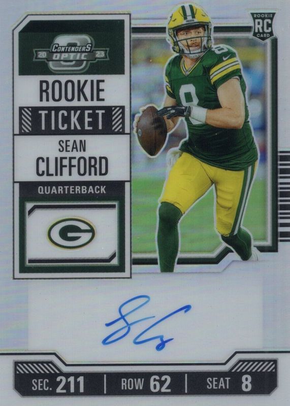 Sean Clifford RC 2023 Contenders Optic SILVER ON CARD AUTO #132 Packers