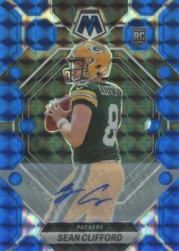 2023 Panini Mosaic Sean Clifford #361 Blue Mosaic Rookie Auto /99 Packers RC AU